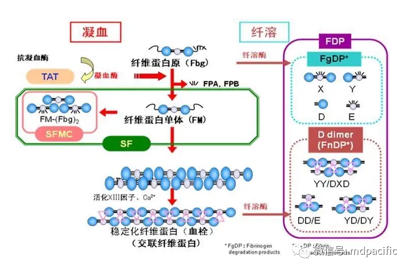 DD是一種特殊的纖維蛋白降解產(chǎn)物,它是由纖維蛋白在凝血酶的作用下形成的。當(dāng)血液循環(huán)中的纖維蛋白含量過高,或者在某些病理情況下(如血栓形成、炎癥、感染等),DD的濃度就會升高。因此,DD被廣泛用于檢測體內(nèi)凝血和纖溶系統(tǒng)的激活,是一種反映體內(nèi)血栓形成和溶解的敏感指標(biāo)。